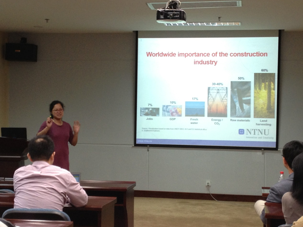 报告中,黄丽珍从生命周期的视角系统地讲解了挪威的建筑,尤其是建筑材料,以及隧道挖掘等对环境的影响,介绍了许多降低碳排和能耗的先进经验。报告结束后,黄丽珍热情回答了在场师生的提问。