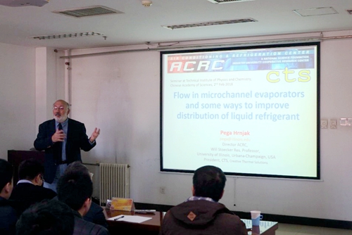 应“理化青年论坛”暨青年创新促进会理化所分会、中国科学院低温工程学重点实验室邀请,美国伊利诺伊大学香槟分校教授Predrag S. Hrnjak于2月2日来理化所访问交流,并作了题为Flow in microchannel evaporators and some ways to improve distribution of liquid refrigerant的学术报告。
