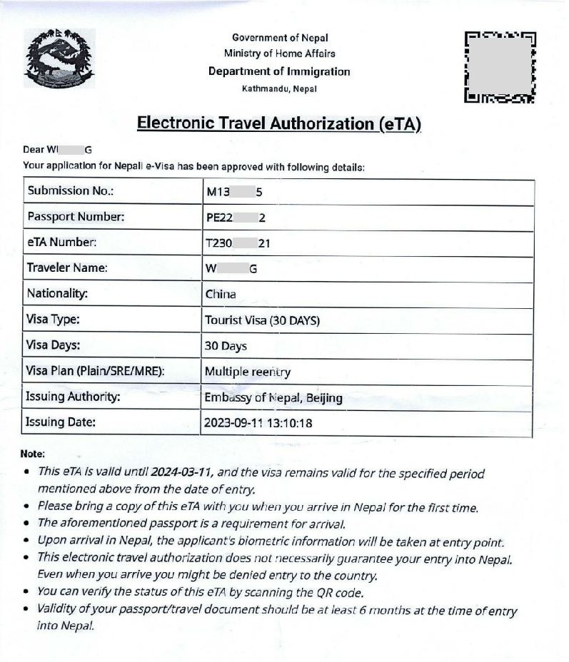 尼泊尔短期签证
